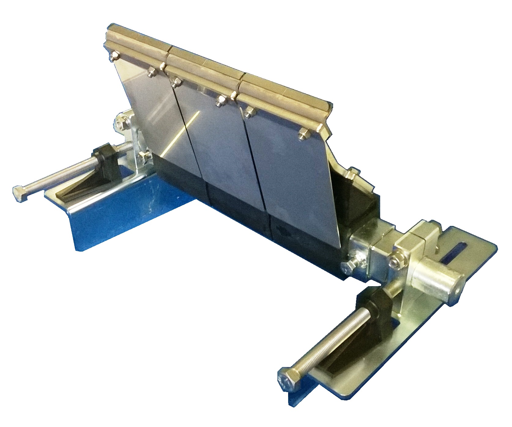 Raschiatore primario reversibile a lama segmentata idoneo per prodotti umidi, fini e abrasivi. indicato anche per nastri trasportatori a doppio senso di marcia.