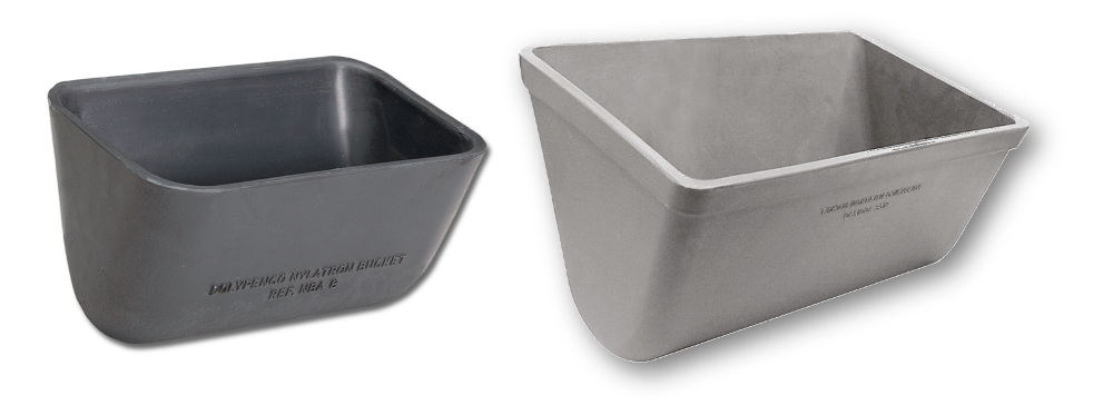Le tazze Polypenco in Nylatron (Nylon fuso) sono ideali per il trasporto di materiali molto abrasivi e collosi nell’industria.